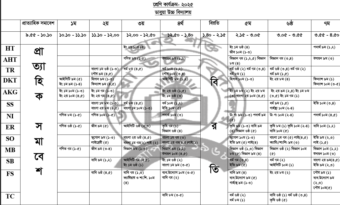 সকল শ্রেণির শিক্ষার্থীর তালিকা